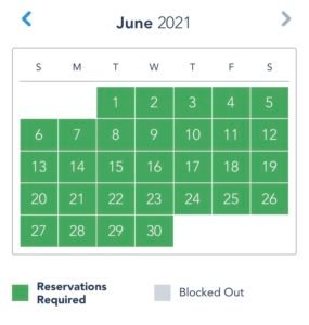 Florida Residents have more options for Annual Passes than those who live out of state. Some of those passes include blockout dates. There is a calendar on the website that lists which days each type of pass is good for. The calendar right now shows dates through June, 2021. This is what has people worried. The guide for the dates has two choices. Gray means blocked out, while green used to say something like “Good to Go”. Now it says “Reservations Required”. Many are jumping to the conclusion that guests will still need reservations to get into a theme park at this time next year.
