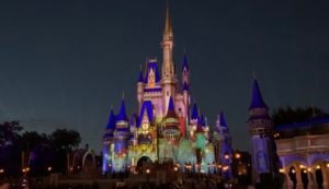For the 2020 holiday season Walt Disney World has opted for projections on Cinderella Castle instead of the lights, and the results are gorgeous. There are four different scenes. At 6:00 each evening the castle will transform. It’s quick but really cool to watch. The transitions will then take place every 15 minutes. The timing is precise, so use the timer on your watch or cell phone if you want to make sure that you don’t miss it.