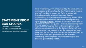 While California has given the go ahead to reopen theme parks on April 1 (if certain criteria have been met), it looks like it will take a bit longer for Disneyland. Disney CEO Bob Chapek announced on Twitter that it will be late April at the earliest. I’ll keep you posted.