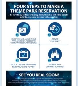 Tip: Be sure to log in to your Disney account first to link valid theme park tickets prior to accessing the park reservation system. See how to make a park reservation, below!
