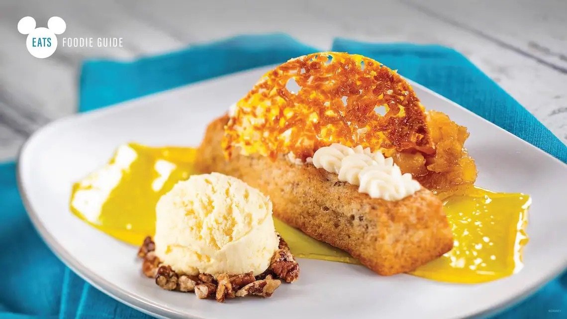- Hummingbird Cake: Banana cake with pineapple, coconut, pecans, and cream cheese frosting with banana sorbet (New)