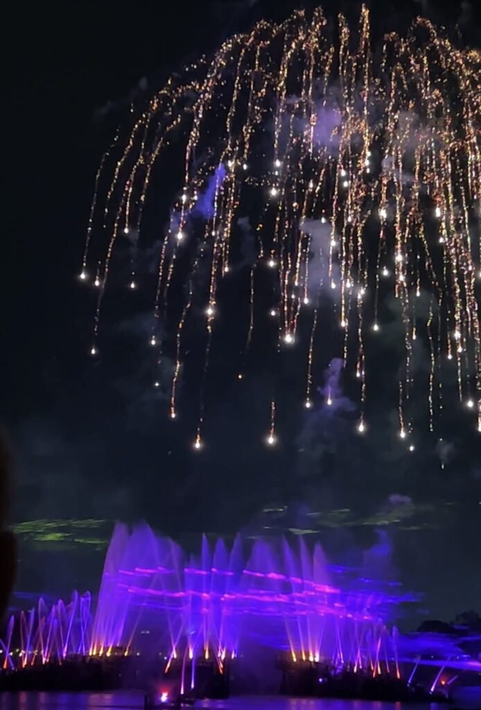 Luminous The Symphony of Us is not a normal fireworks show. I felt like it’s kind of a combination of World of Color at Disney California Adventure and Rivers of Light that used to close the day at Disney’s Animal Kingdom, with some fireworks thrown in. That’s a terrible description, but this is my initial reaction and that’s all I could think of while watching it. A good part of Luminous is a water and light show, set to music. Most of the fireworks are down low, around the water elements, but there are still some that are shot into the sky. There are no water screens or projections. I usually love projections, but it was nice to watch a show without them. Luminous doesn’t need projections, they would take away from the show.