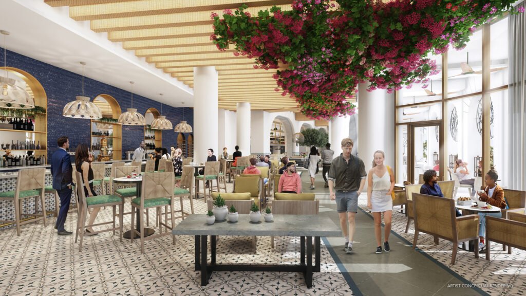 • Flora Taverna – a full-service restaurant offering breakfast, lunch and dinner and lobby bar with a light and airy atmosphere – featuring an open-style kitchen with live cooking, Mediterranean comfort foods, pizza ovens, and al fresco seating overlooking the beautiful scenery of Celestial Park;