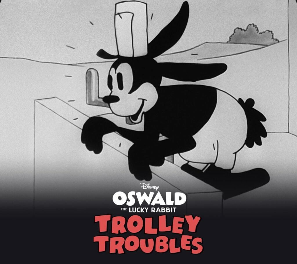 If you’d like a real peek at early animation by Walt Disney, watch Trolley Troubles! It was the theatrical debut of Oswald the Lucky Rabit, although it was actually the second Oswald short. (The first, Poor Papa, was rejected by the studio.) Trolley Troubles is available on Disney+, and you can probably find it easily enough on YouTube. Not only is it a glimpse into the creative mind of Walt Disney, it’s a lot of fun to watch.
