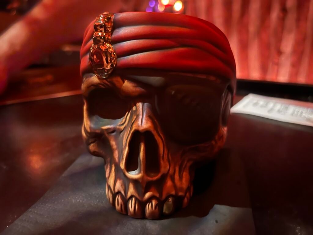 Our server was Jimbo, and he was hilarious. He played the role of pirate bartender well, but also was on top of everything. He seemed to be having as much fun as we were having. Jimbo showed us the mug that comes with Plunderer’s Punch. If you order it, they’ll give you a clean one to take home.