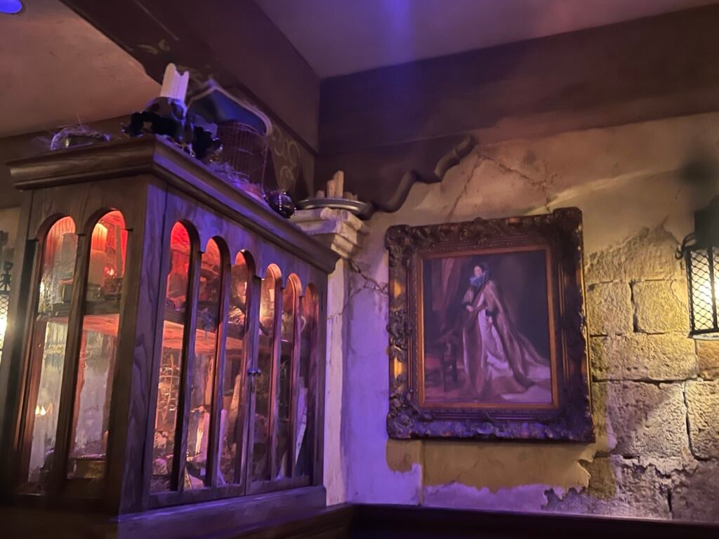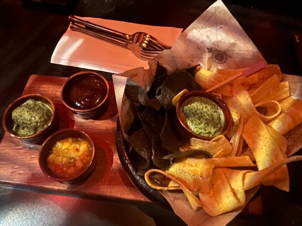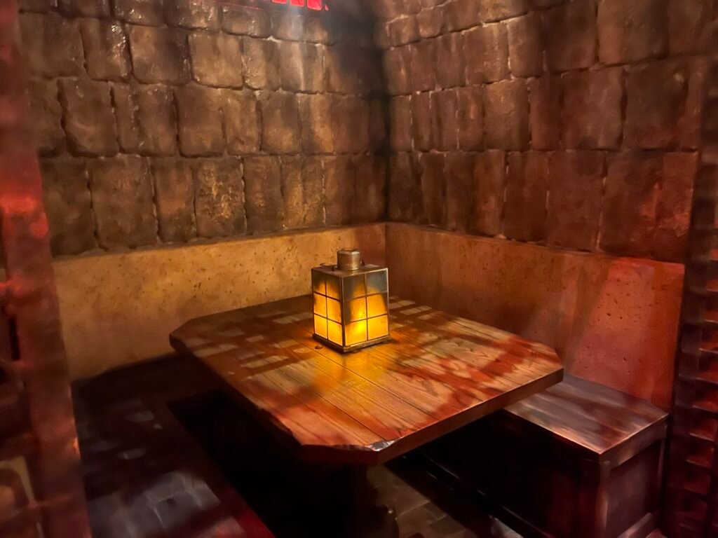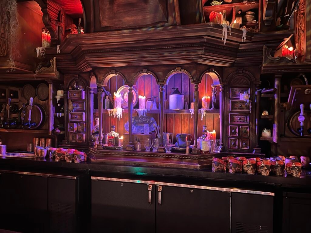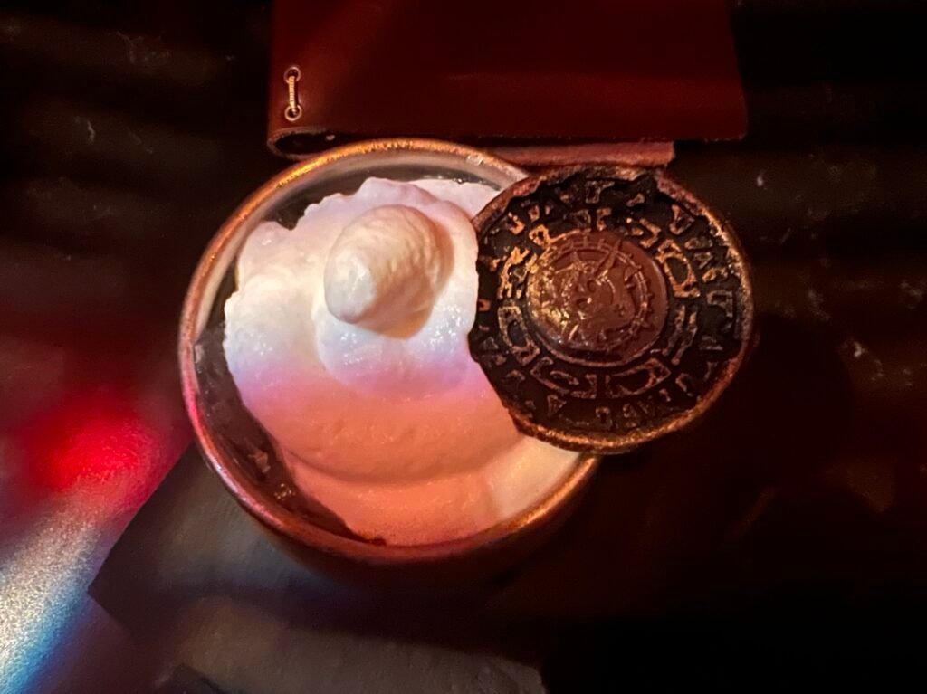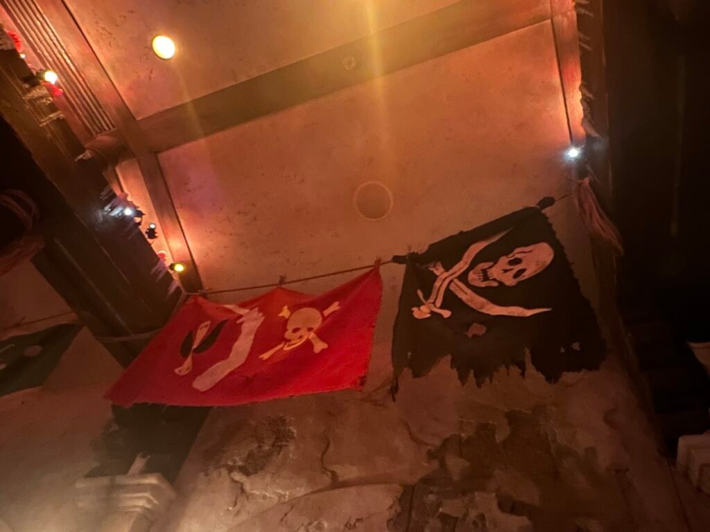I do think that the menu is a bit limited. Neither my daughter nor I drink, so the fun options were limited. My daughter also has a dairy allergy. I had the non-alcoholic Cursed Treasure. It was very good, but not the easiest to drink. There was a “pirate’s gold” cookie on top, which Jimbo told me may or may not be cursed. When the credit card machine didn’t want to work, I said that maybe the machine was what ended up with the curse, not me.