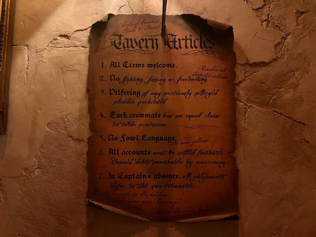 While there’s room for improvement in the menu, I highly recommend making The Beak and Barrel part of your Walt Disney World vacation. It’s fun! The staff is incredible, the food is good, and the drinks are unique. But it’s the atmosphere that will keep you talking. Since there’s a 45 minute limit, The Beak and Barrel won’t take up too much time from your Magic Kingdom day. If you’ve ever wanted to live a pirate’s life, this is the place to do it! Yo ho, yo ho…
