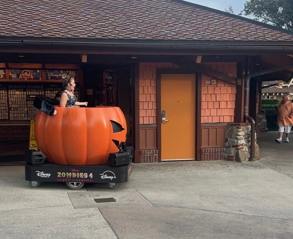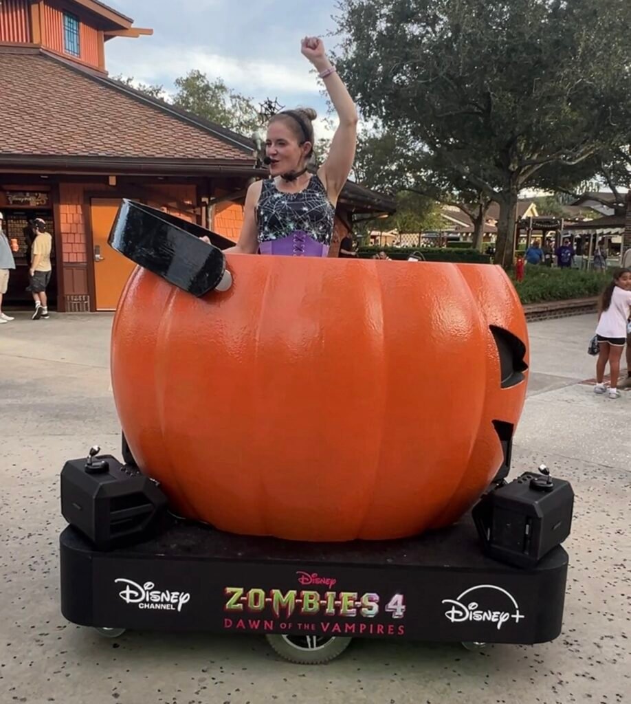 Disney Springs is known in part for entertainment, and there is plenty to go around leading up to and on Halloween! I’ll start with a not-so-scary act. There is a Roving Pumpkin DJ! You can catch this kid-friendly option every evening through Halloween. The Roving Pumpkin DJ is found in Marketplace.