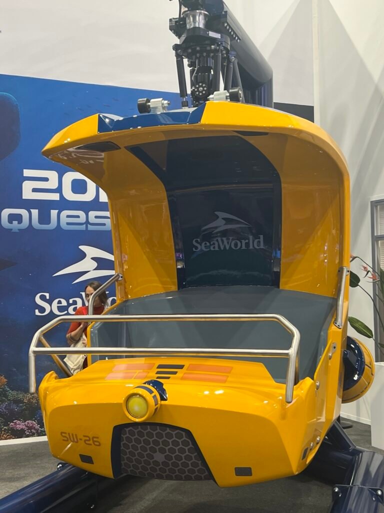 The ride vehicle for SEAQuest: Legends of the Deep at SeaWorld Orlando
