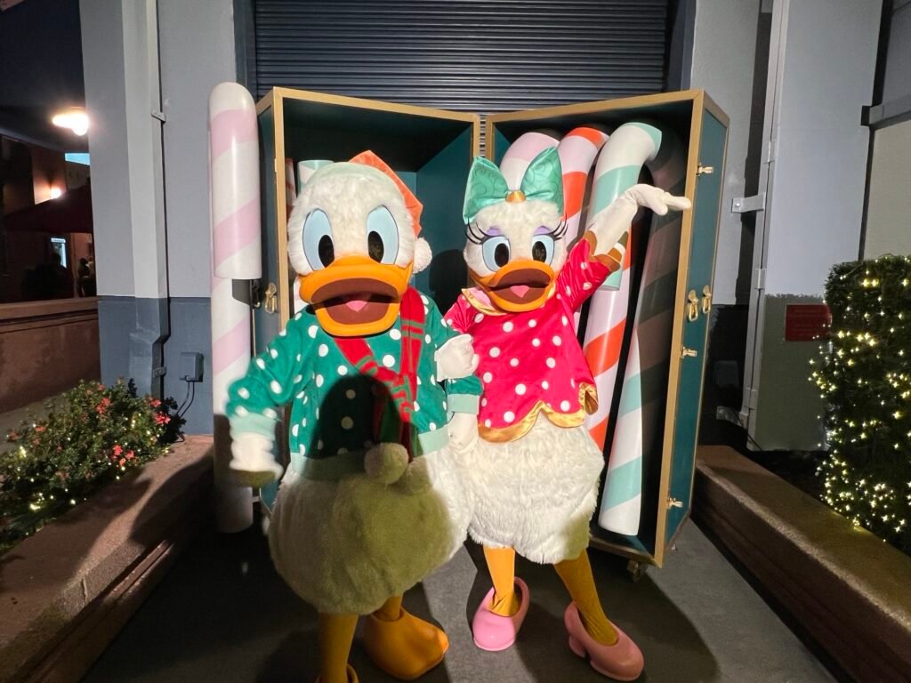 For my daughter and me, our primary focus of Disney Jollywood Nights was meeting characters. Five hours isn’t nearly enough time to see them all! We decided to pick and choose the most important characters to us. Santa Duffy came in a close second after Chewbacca. Partysaurus Rex was so much fun! While in Toy Story Land we met Bo Peep, who did a great job of communicating without talking. Mickey and Minnie are always must meet. We also waited for Donald and Daisy, who were kind of crammed into a tight spot on Commissary Lane.