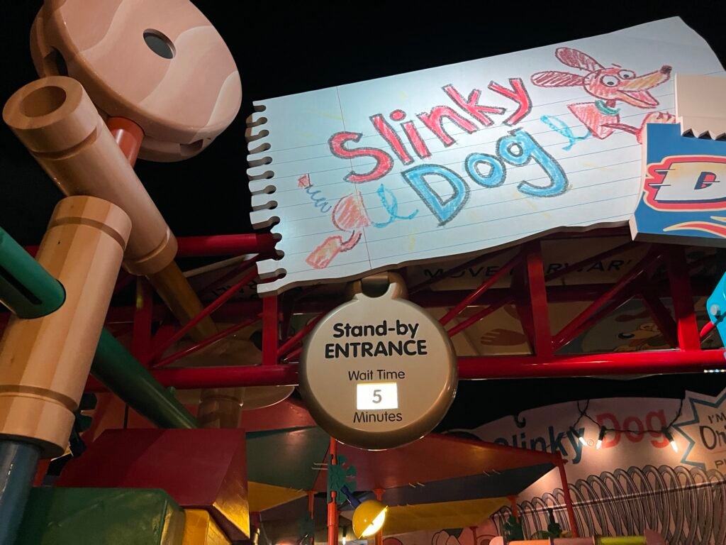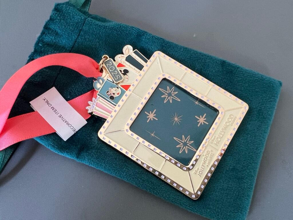We wrapped up our evening with a chilly ride on Slinky Dog Dash. It was walk on, how could we resist? When we left, we were given Christmas tree ornaments. They’re a small picture frame.