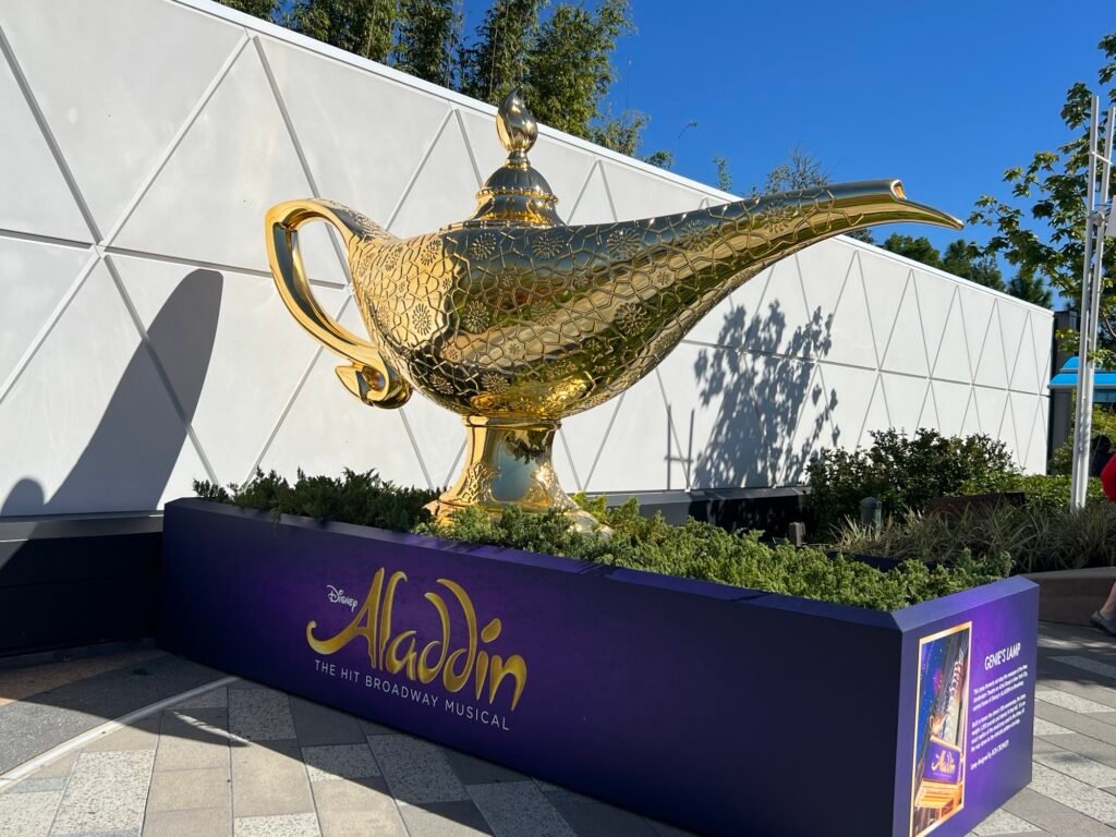 There are many special picture opportunities for the Epcot International Festival of the Arts. One of the best is found outside of CommuniCore Hall. Ever want to make a wish on Genie’s Lamp? You’ll have your chance! It’s the same lamp that was on the top of the marquee at the New Amsterdam Theater in New York City. It’s 14 feet tall, and weights 1,200 pounds! You don’t want to miss this, but then again, it’s hard to miss!