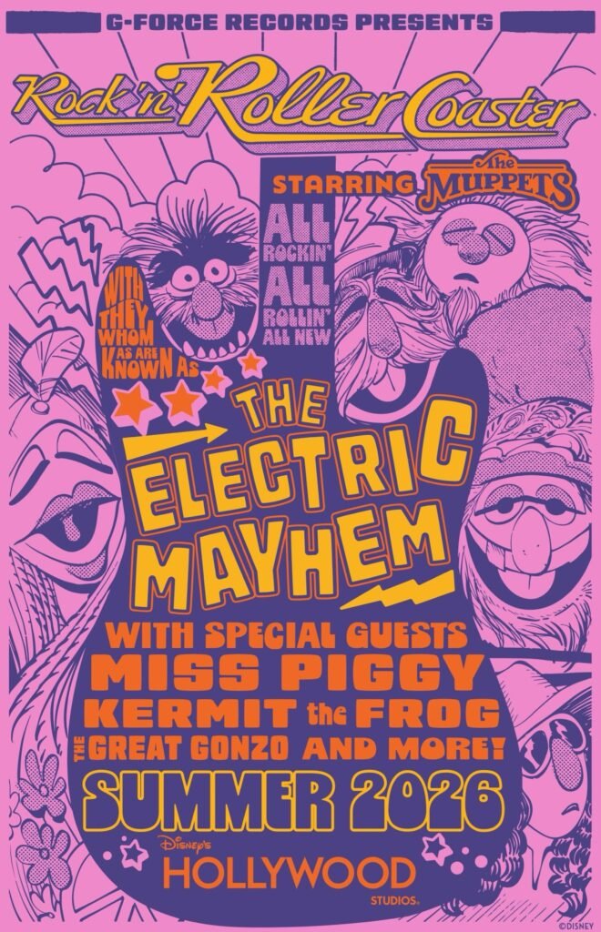 Rock ‘n’ Roller Coaster Starring The Muppets comes speeding into Disney’s Hollywood Studios in summer 2026, fueled by the tasty tunes of the Electric Mayhem and the high-speed hijinks of The Muppets.