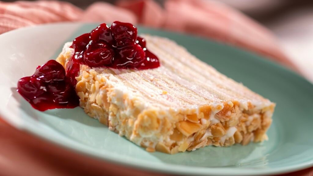 - Kirschwasser Torte with Cherry-Brandy Buttercream, Fondant, Sugared Almonds, and Cherry Compote (The Alps)